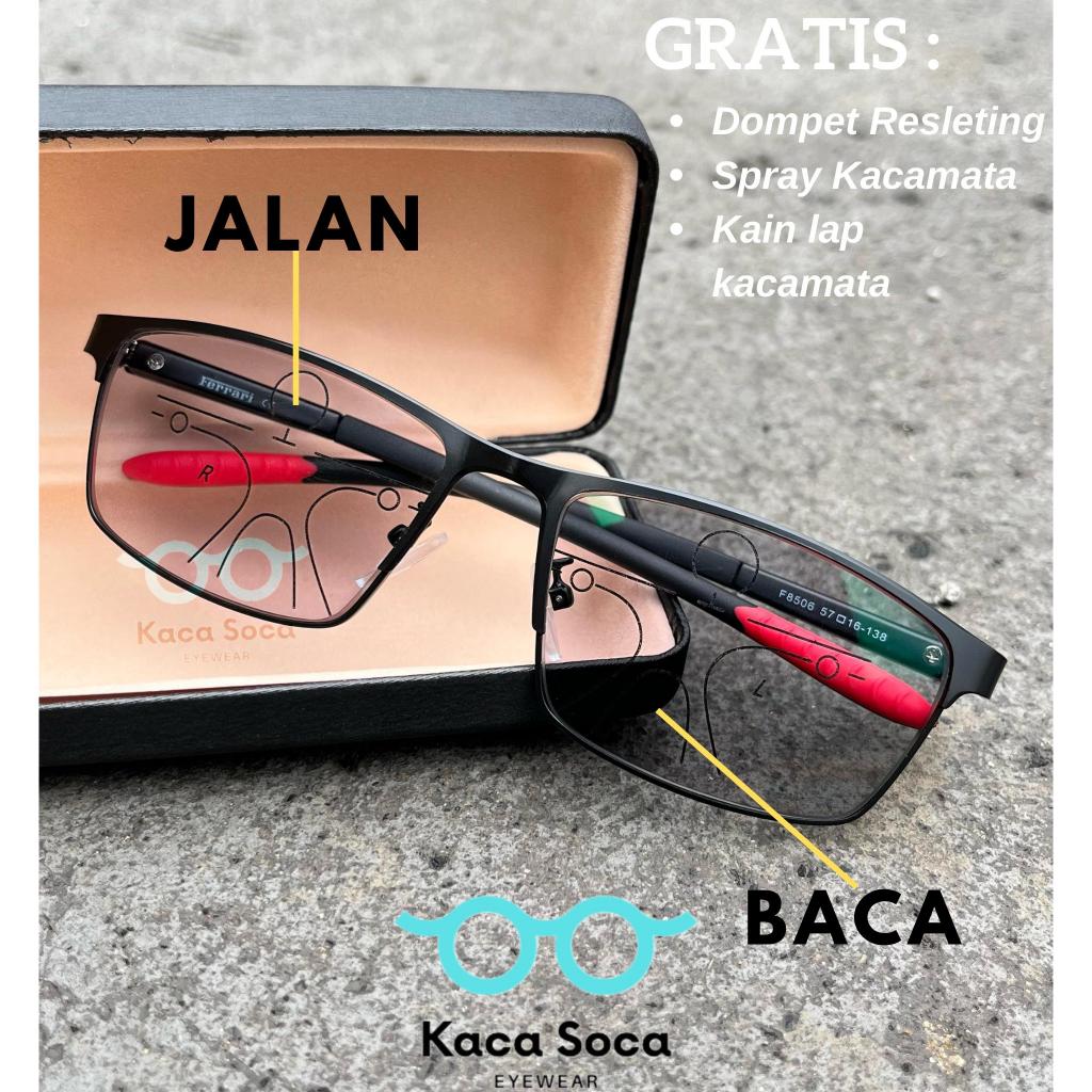 Kacamata Progresif Sporty Pria Kacamata Progresif Photocromic Bisa Untuk Baca Dan Jalan Frame Ferrari Lensa Progresif