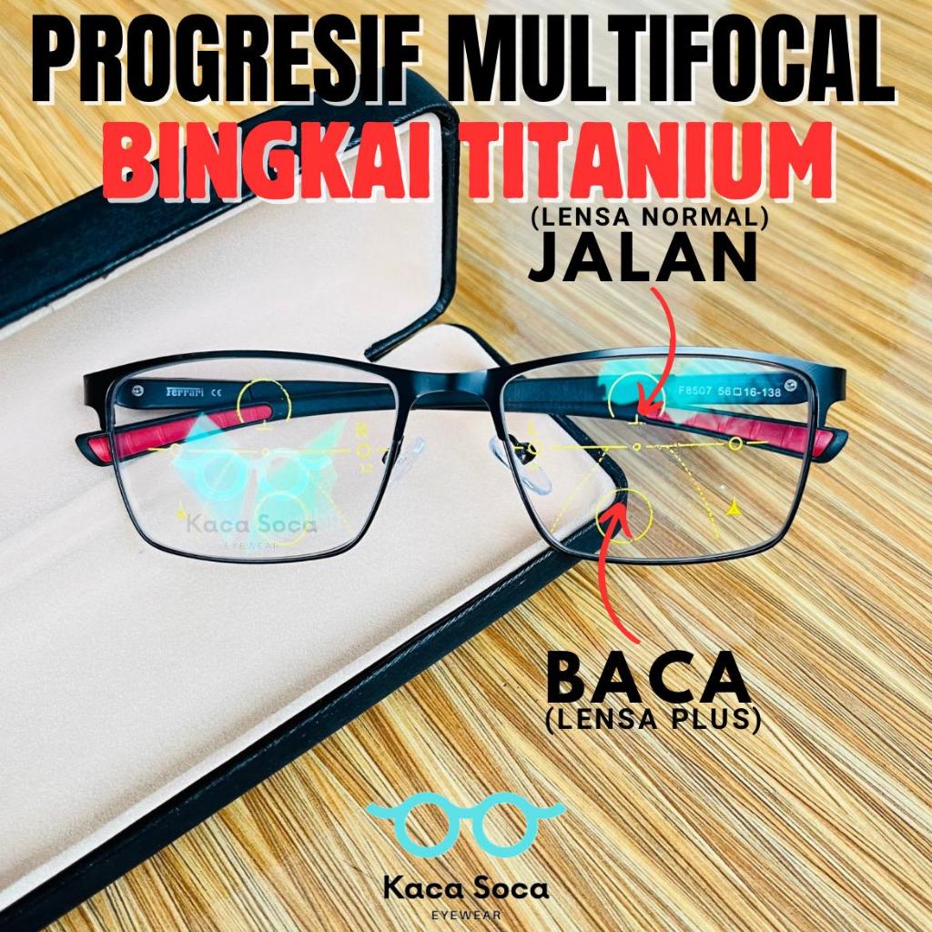 Kacamata Pria Progresif Plus Baca Dan Jalan Lensa Bluecromic Photocromic Frame Titanium