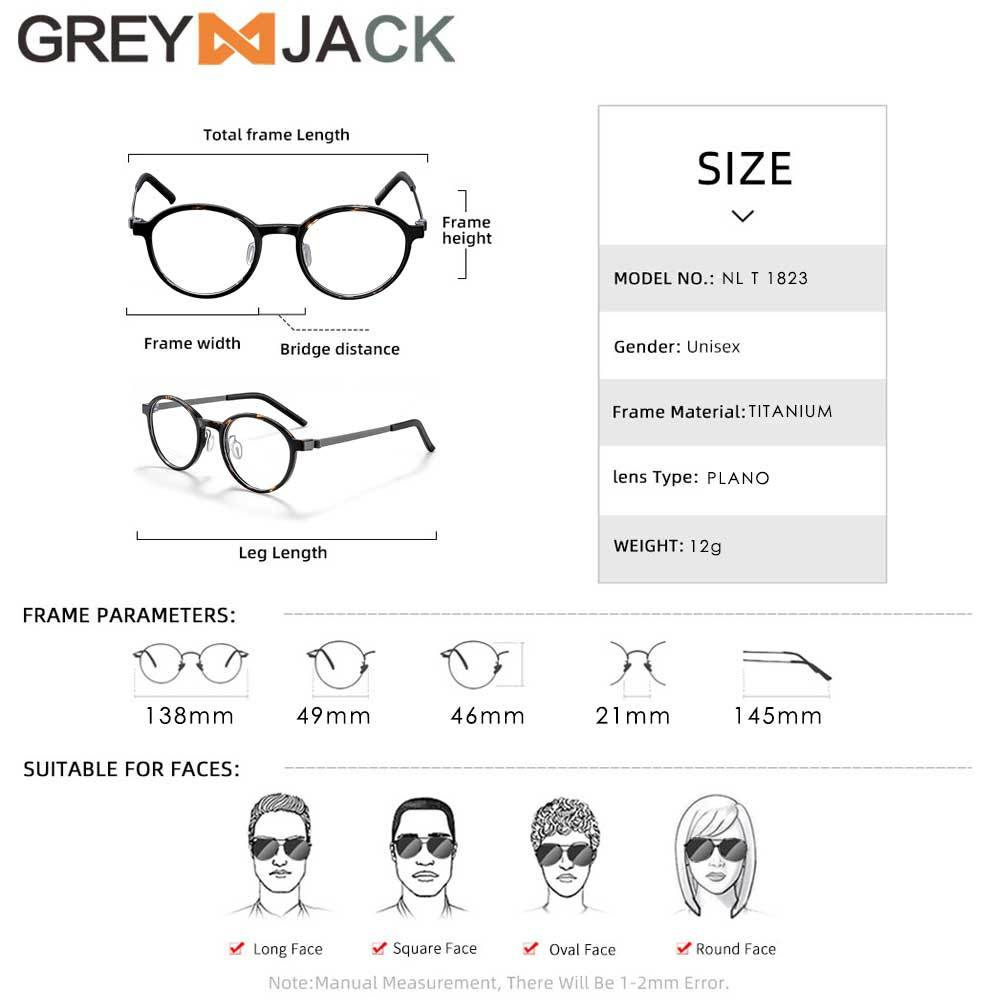 Grey Jack Frame Kacamata Bahan Titanium Sangat Ringan dan Kokoh Model Oval Fashion Laki-laki dan Wanita Bisa Minus 1823