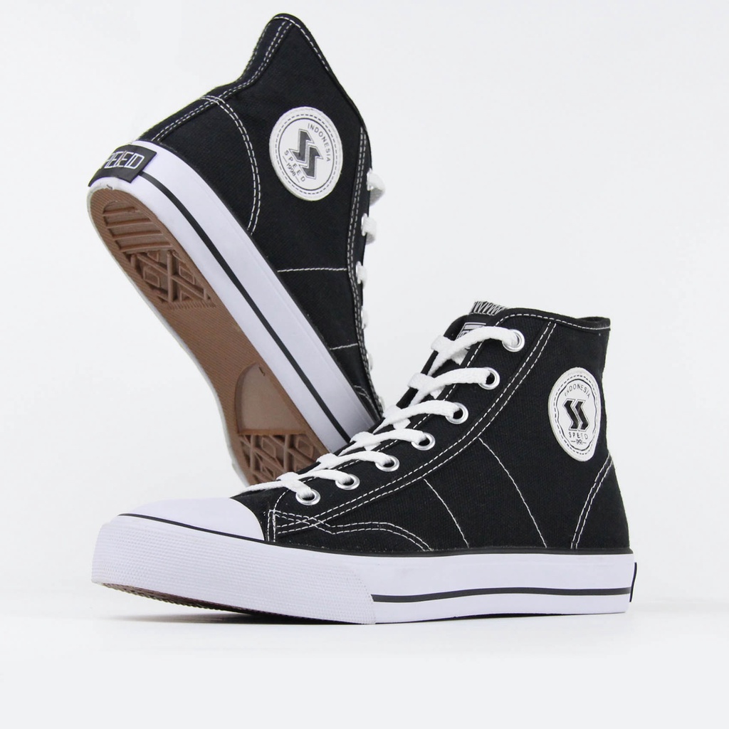 SPEED - Basic Hi Hitam Putih - Sepatu Pria Wanita 33 - 43