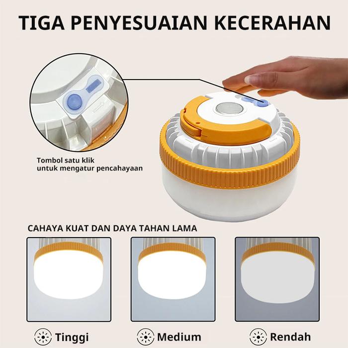 LAMPU EMERGENCY BULB LED 300W/400W PORTABLE GANTUNG CAMPING LAMPU DARURAT LED TAHAN LAMA USB NYALA 6 JAM INDOOR OUTDOOR RECHARGEABLE - 300W