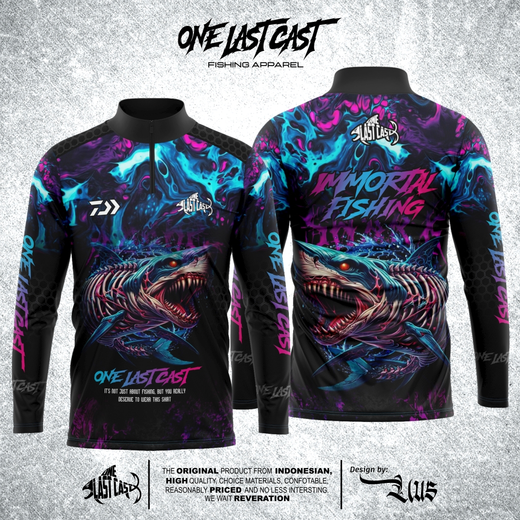 Onelastcast Baju Mancing / Jersey Mancing Model Kerah Berdiri Zipper / I'm MORTAL FISHING FullPrint