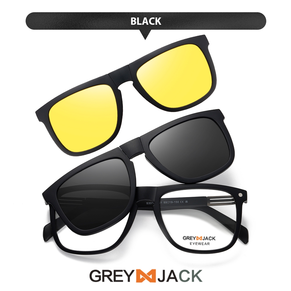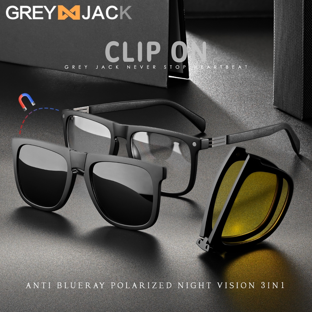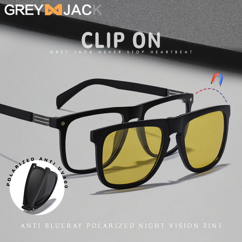 Grey Jack Kacamata Clip On 3in1 Bisa Minus Model Kotak TR90 Free 2 Clip Polarized Night Drive Keren Pria Wanita 33105