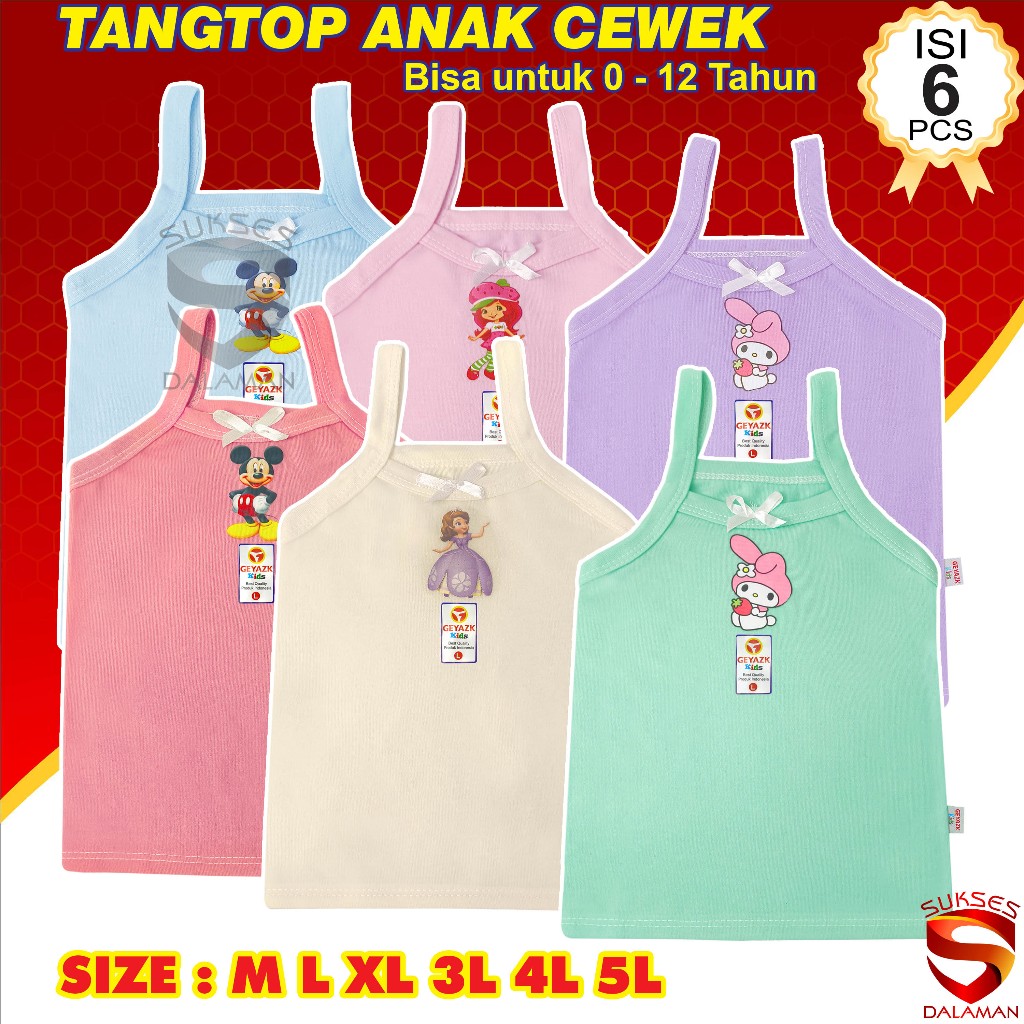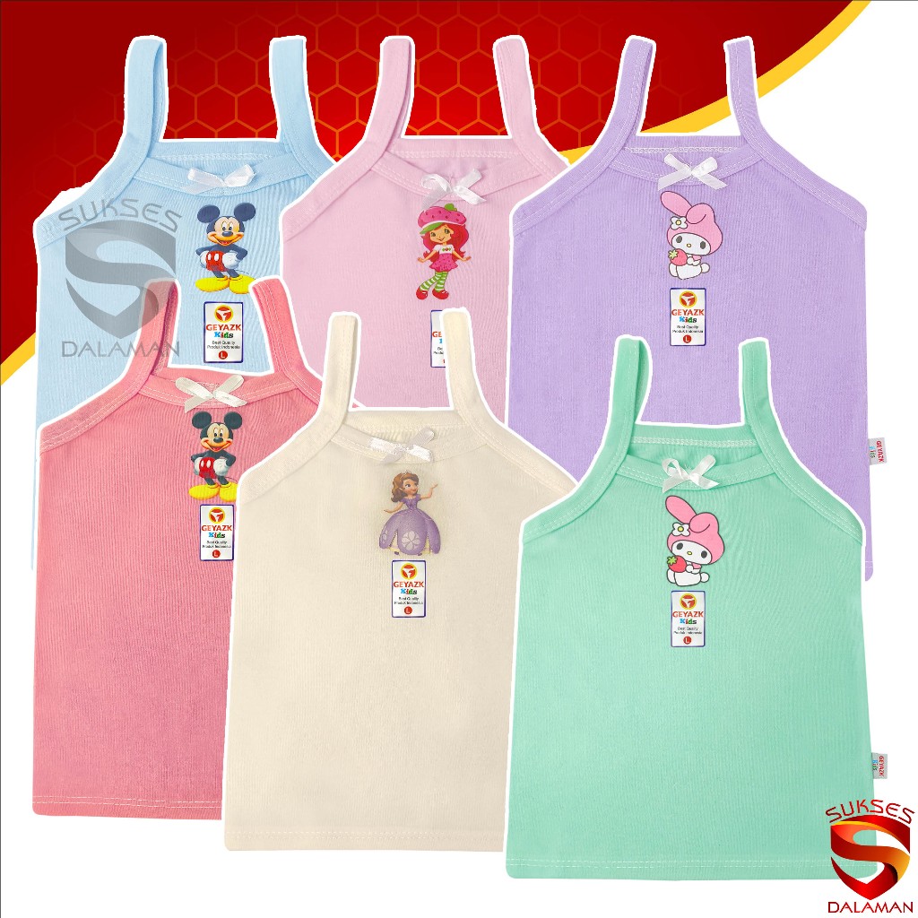 6 Pcs Tengtop Anak Perempuan Motif Gambar Singlet Tangtop Cewek Multiwarna SUKSES DALAMAN