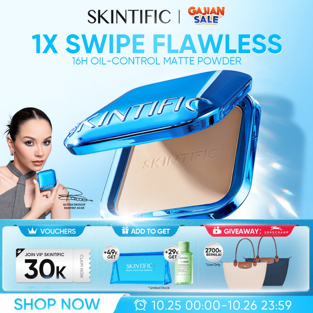 SKINTIFIC Ultra Cover Powder – Bedak Padat Two Way Cake Matte, Nutup Pori & Minyak, Full Coverage 12 Jam