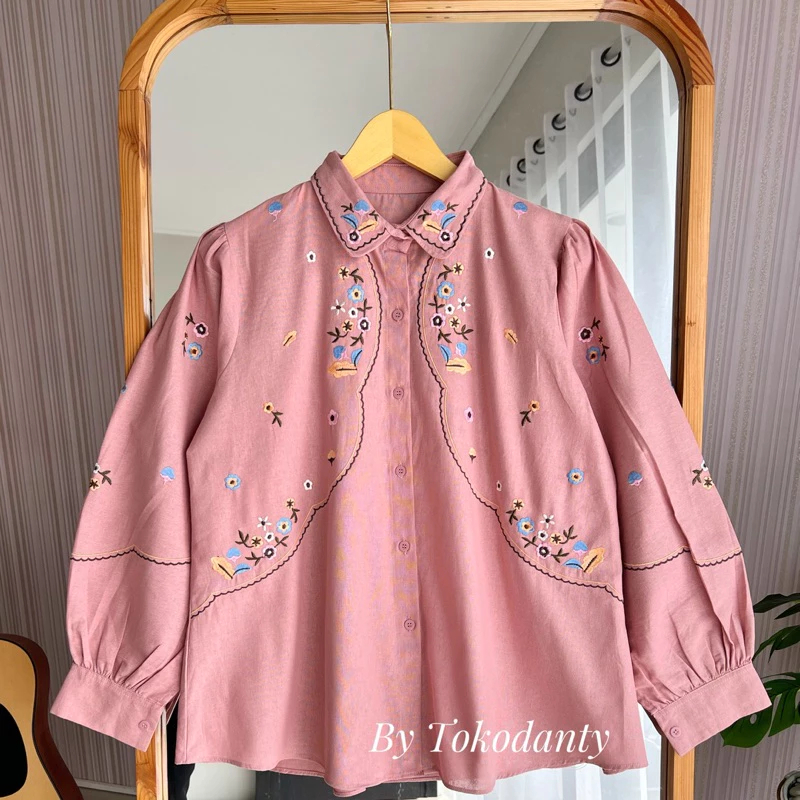 Atasan Wanita Kekinian Liora Shirt Bordir Series Premium Kemeja Wanita Lengan Panjang Motif Aesthetic Best Seller Murah