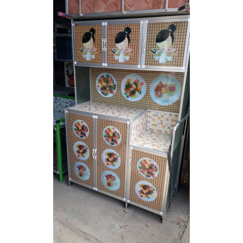 Lemari Piring Rak Piring 3 Pintu Almunium Kaca Full Karakter
