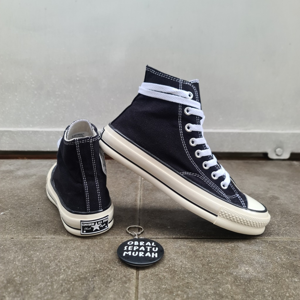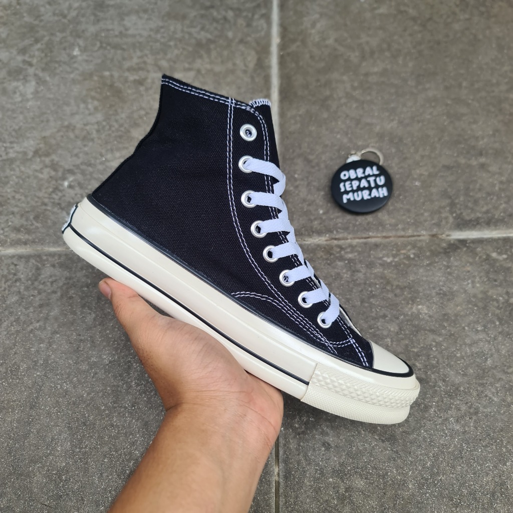 OBRAL SEPATU SNEAKERS 70S HIGH BLACK WHITE SOL GLOSSY 36-43 SEPATU SEKOLAH HITAM PUTIH