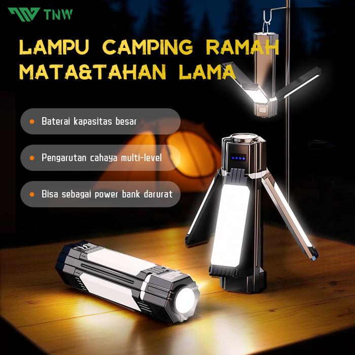 TNW OL5 SENTER LED SUPER TERANG CAMPING LAMP PORTABLE FLASHLIGHT RECHARGEABLE LED EMERGENCY LAMP FOR OUTDOOR CAMPING HIKING - HITAM