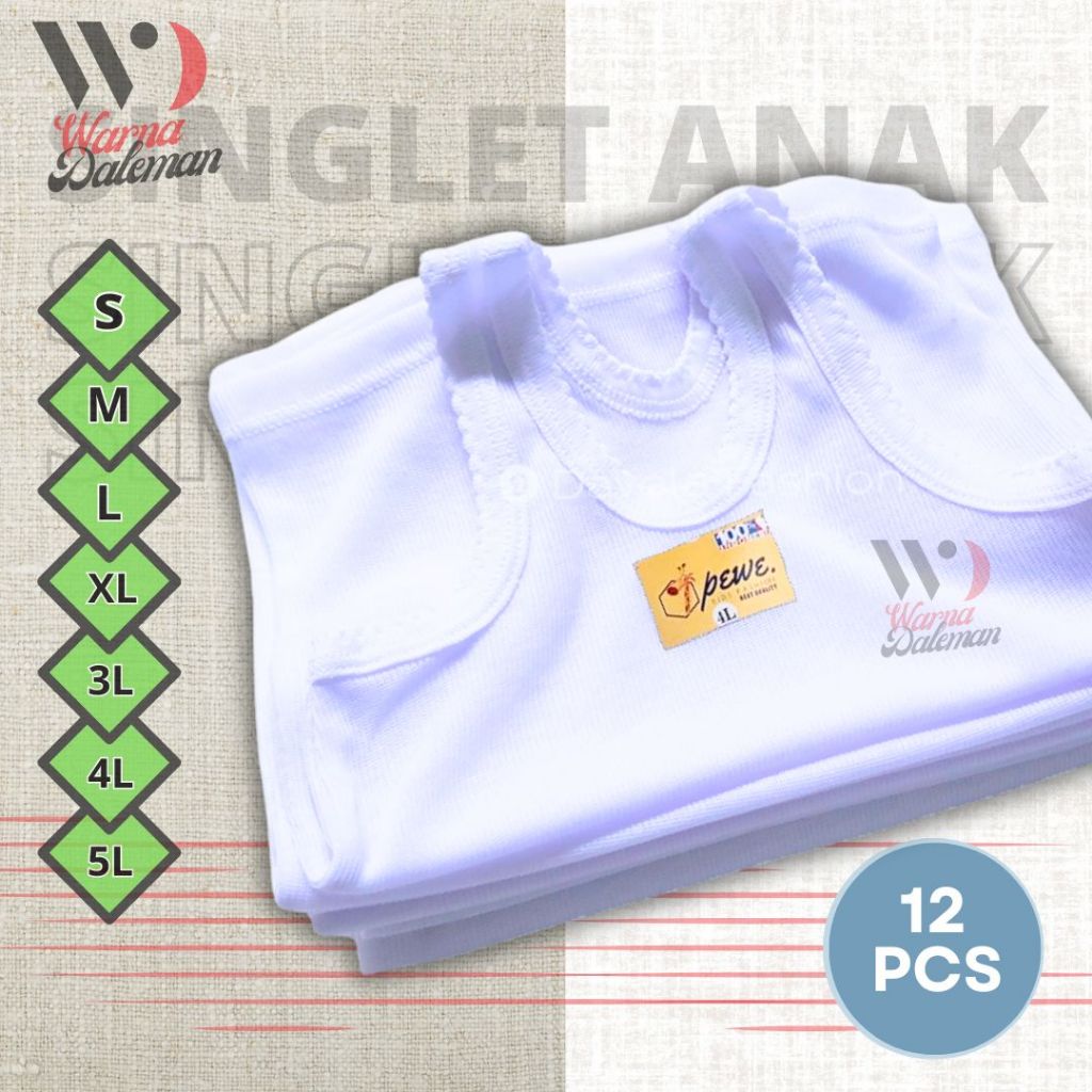 12 Pcs Kaos Dalam Anak Perempuan Lusinan / Baju Singlet Anak Laki Laki Warna Putih Polos Tanpa Bolong Untuk Usia 1 - 12