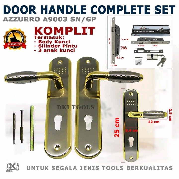 AZZURRO Kunci Gagang Pegangan Pintu Rumah Besar Set Door Handle Complete Komplit Lengkap 25 Cm