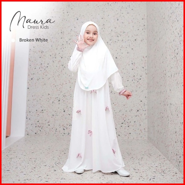 Gamis Maura Syari Anak Tanggung 11 12 13 14 15 16 17 Tahun Perempuan Crinkle Airflow Set Hijab Variasi Pita