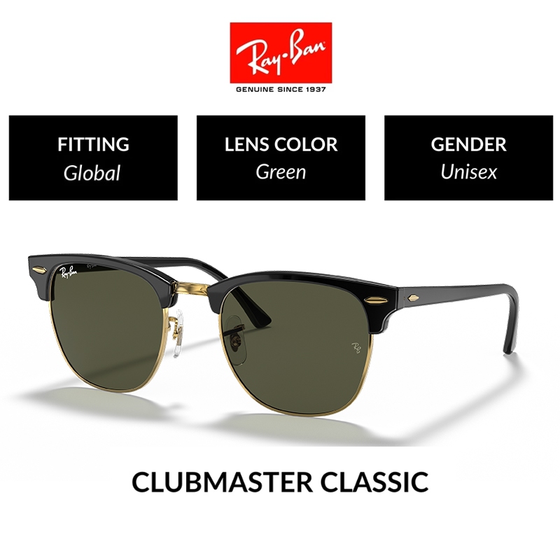New 100 PERSEN Original Ray-Ban Kacamata Hitam CLUBMASTER RB3016 Sunglasses Black pria wanita Grey