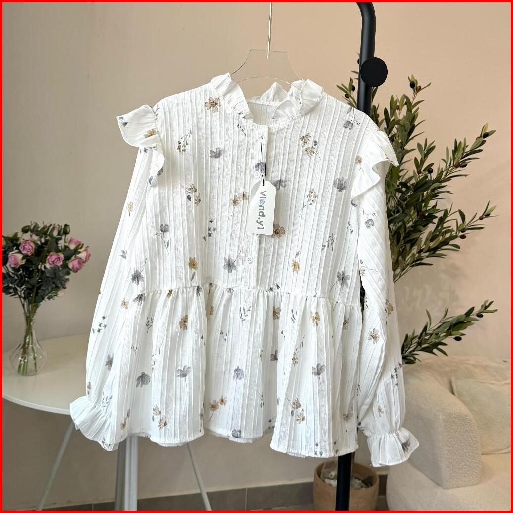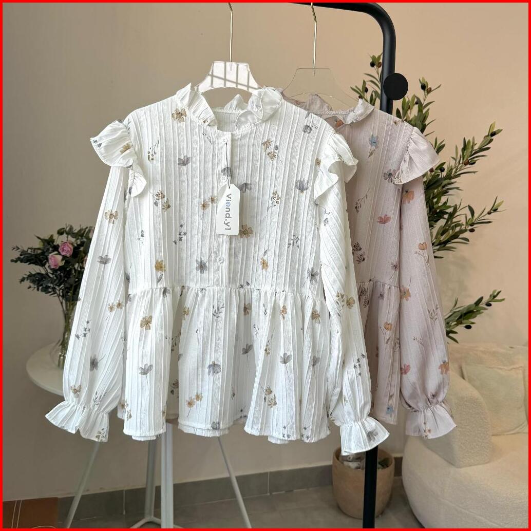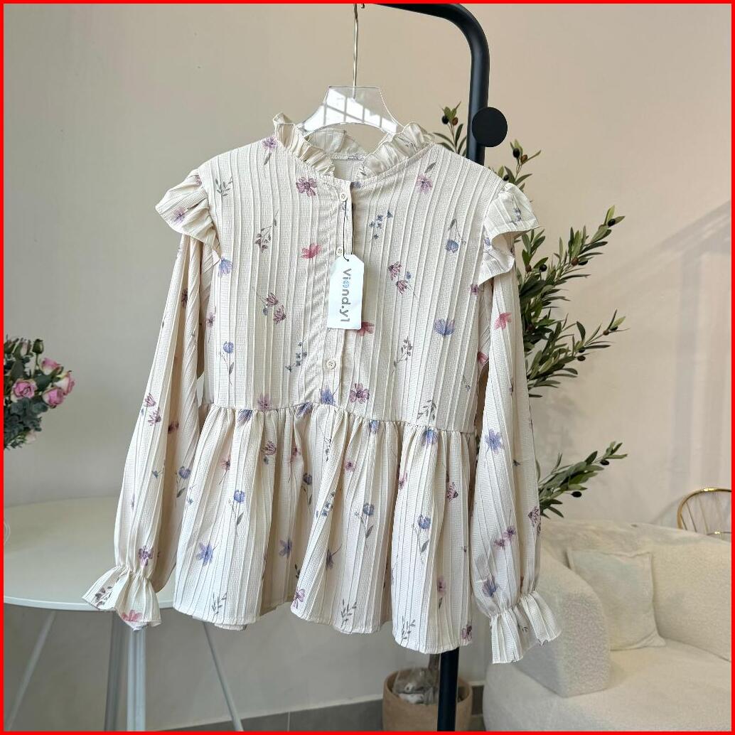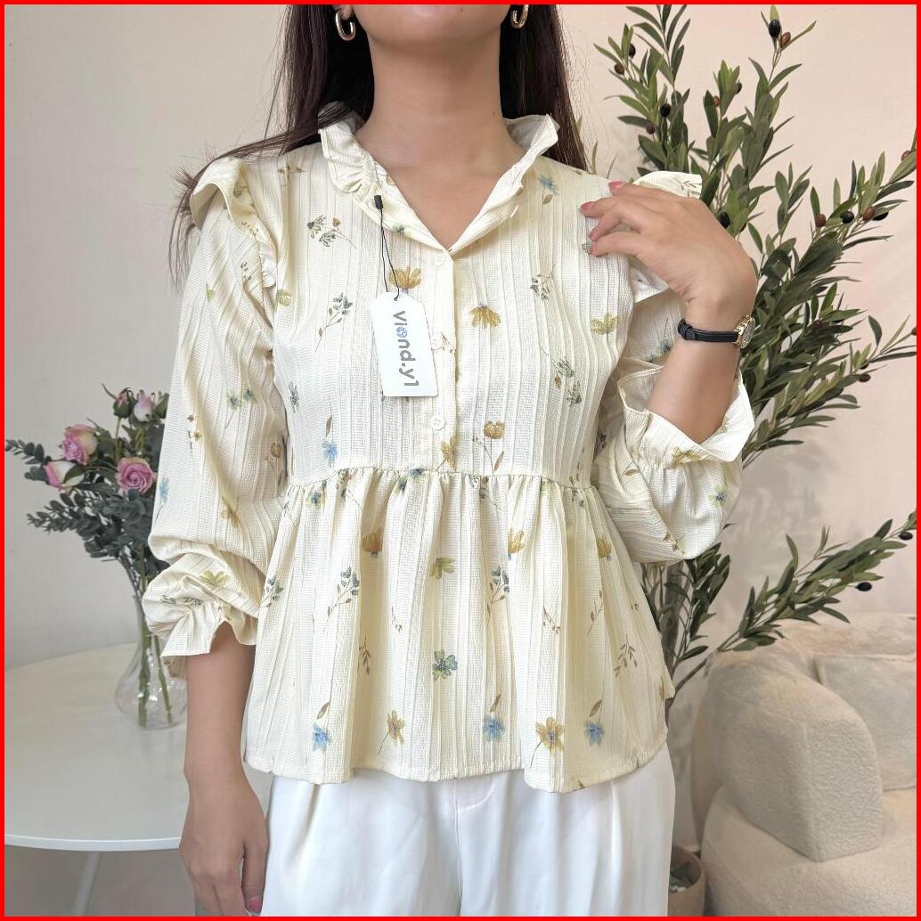 Atasan Bunga Wanita Flowers Style Blouse Puff Korean Sleeve Tops Hijab Style E.186