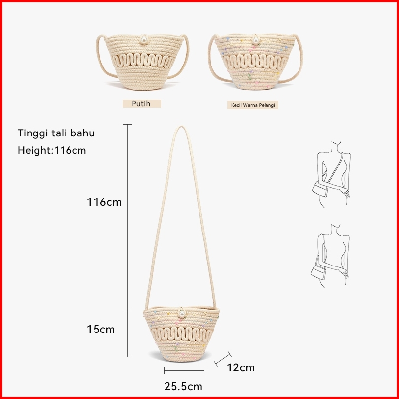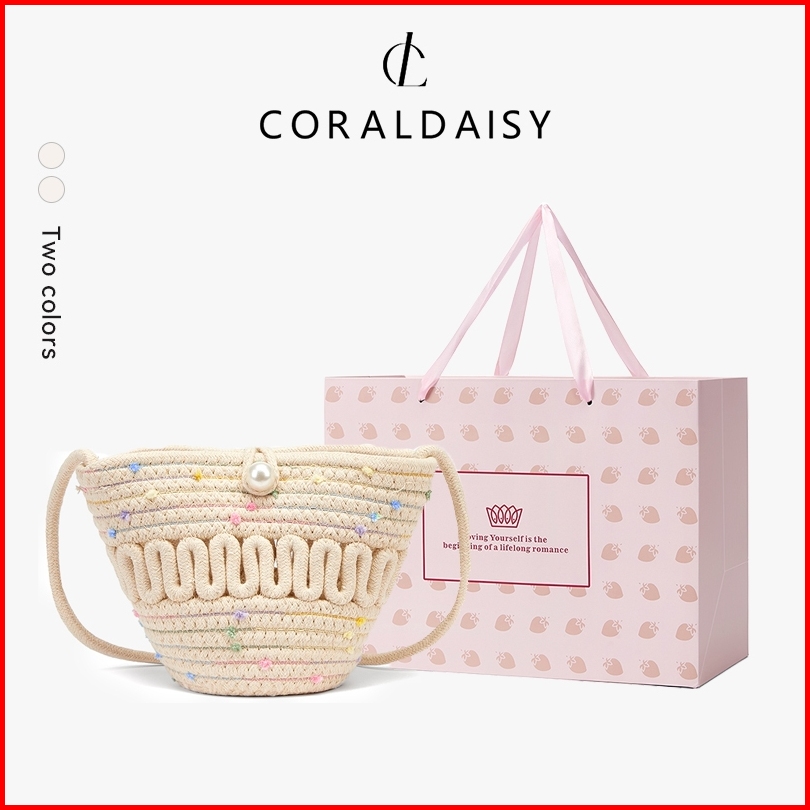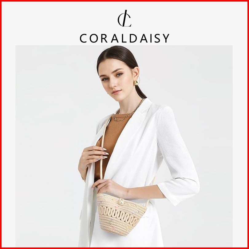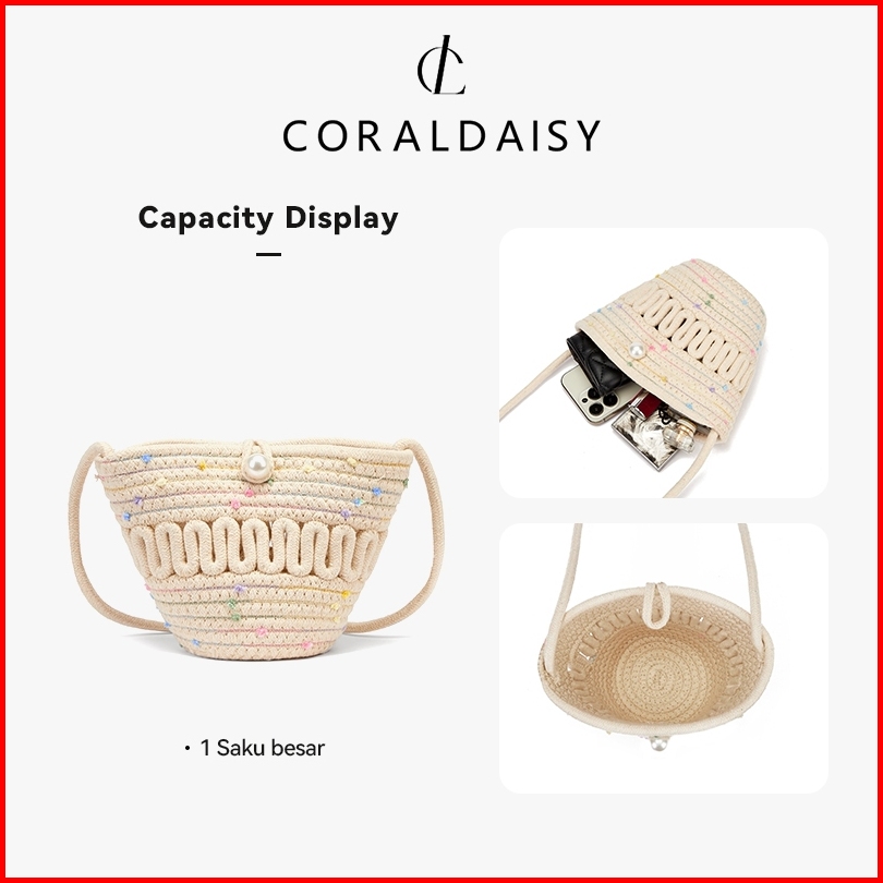 Coraldaisy Tas Wanita 2025 Tas Anyaman Tas Selempang Tombol Mutiara Sling Bag Tas Kecil Tas Bahu