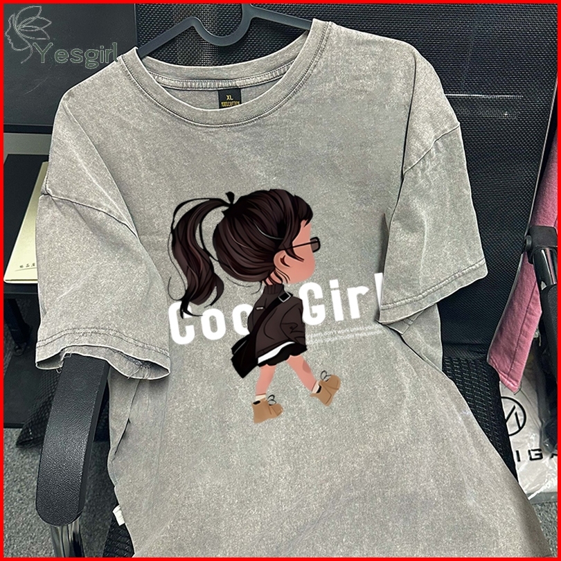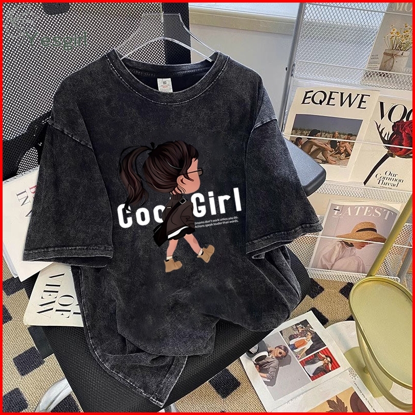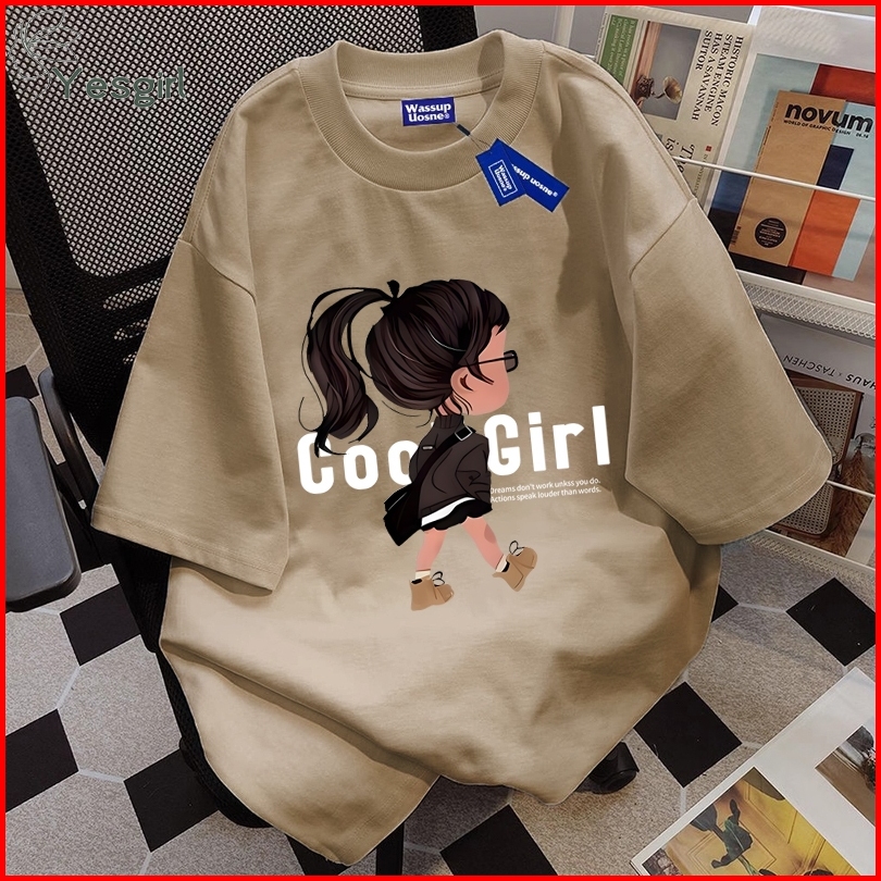 Yesgirl Korea Style Cool Girl Print Kaos Kasual Longgar Kaos Oversize Wanita Fashion Korean Style Baju Kaos Oversize Baj