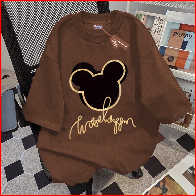 Yesgirl Korean Cartoon Mickey Mouse Cute Print Kaos Kasual Longgar Kaos Oversize Wanita Fashion Korean Style Baju Kaos O