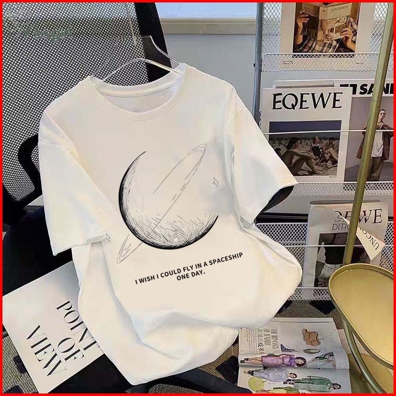 Yesgirl Korea Style I Wish I Could Fly In A Spaceship One Day Print Kaos Kasual Longgar Kaos Oversize Wanita Fashion Kor