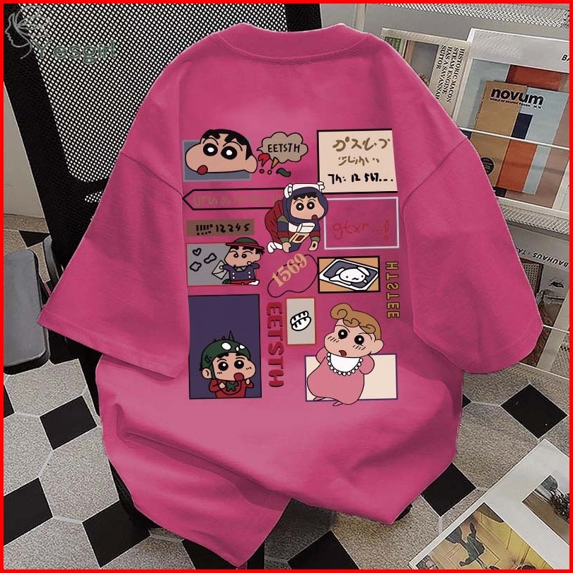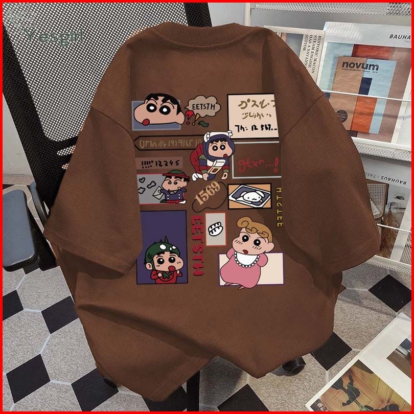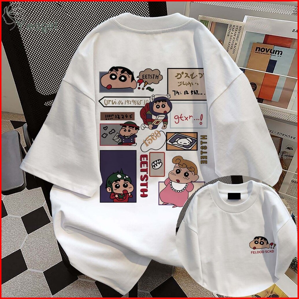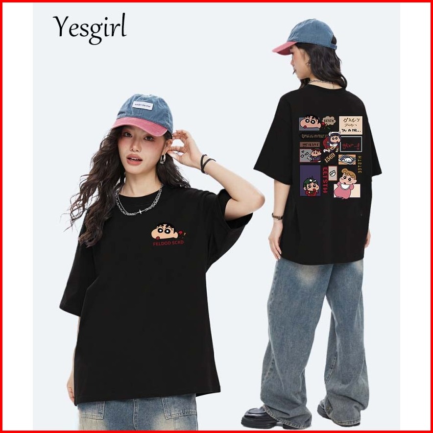 Yesgirl Korea Style Astronot Crayon Shin-chan Print Kaos Kasual Longgar Kaos Oversize Wanita Fashion Korean Style Baju K
