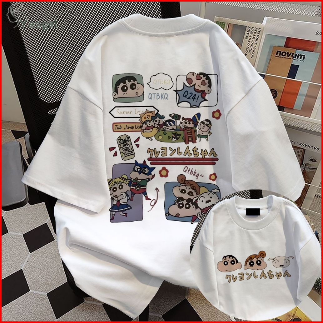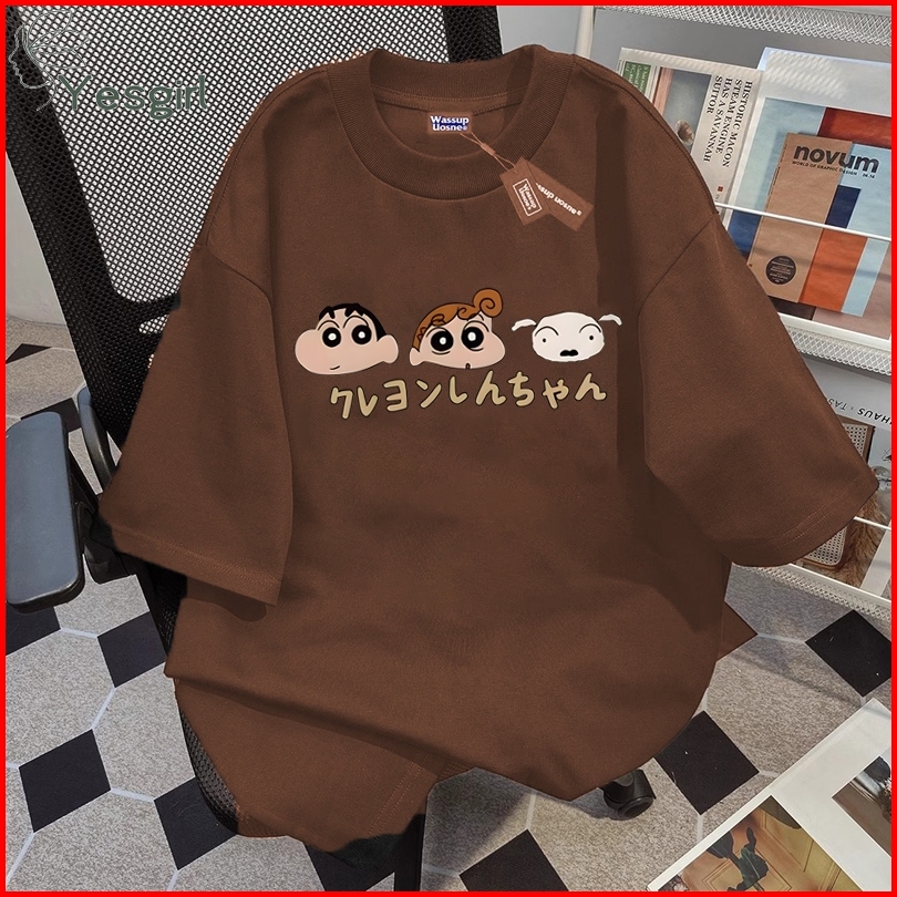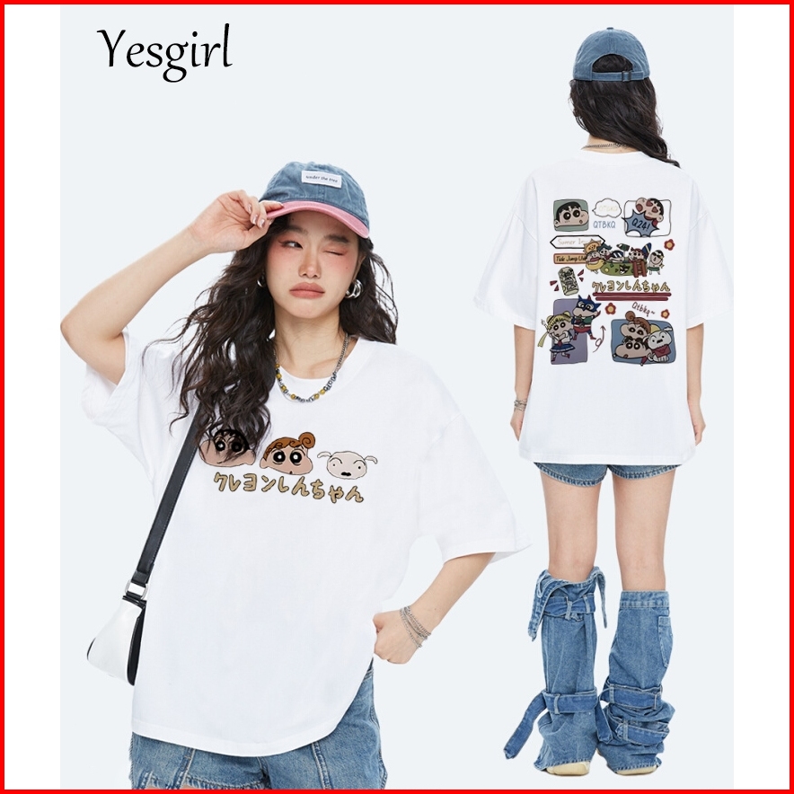 Yesgirl Korean Style Crayon Shin Print Kaos Kasual Longgar Kaos Oversize Wanita Fashion Korean Style Baju Kaos Oversize