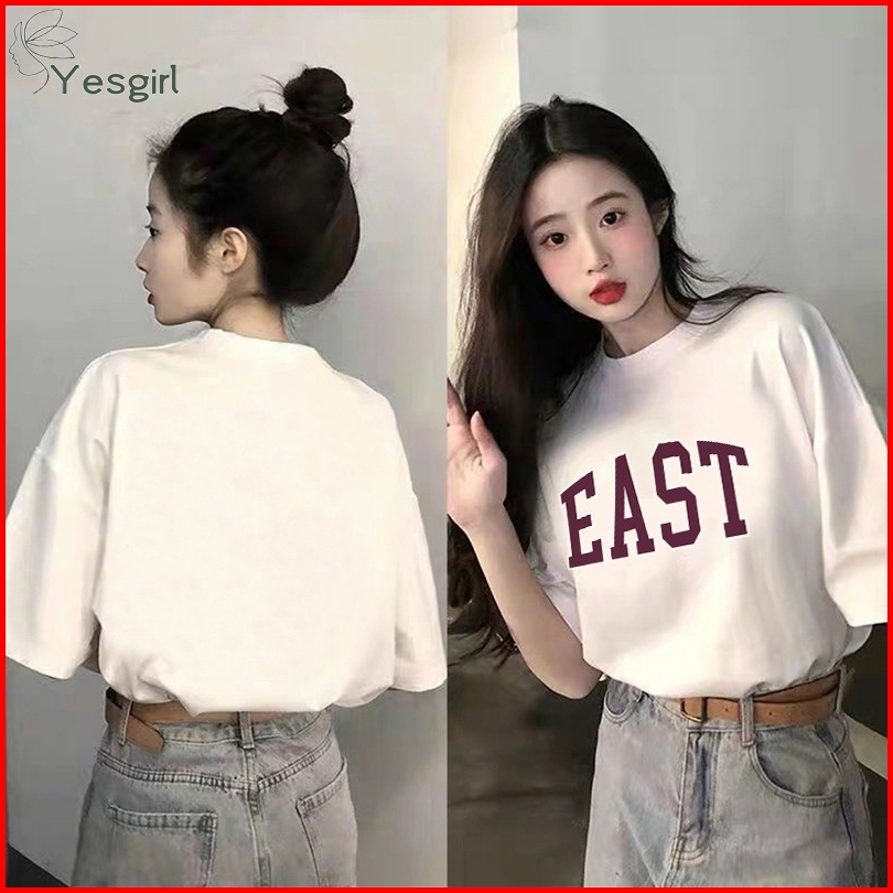 Yesgirl Korea Style Oversized Letters East Print Kaos Kasual Longgar Kaos Oversize Wanita Fashion Korean Style Baju Kaos