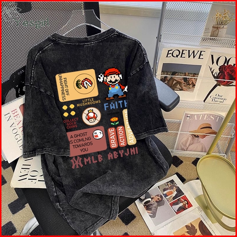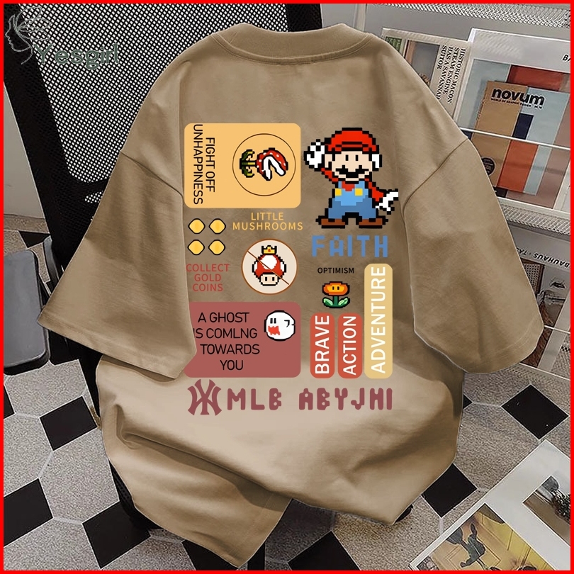 Yesgirl Korea Style Mb Mario Collaboration Print Kaos Kasual Longgar Kaos Oversize Wanita Fashion Korean Style Baju Kaos