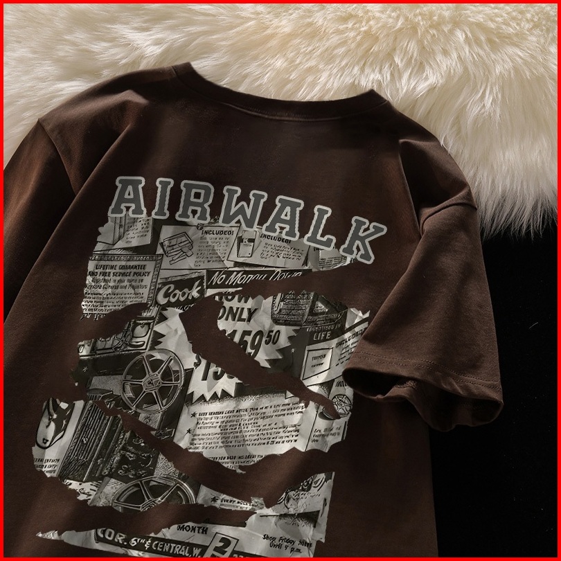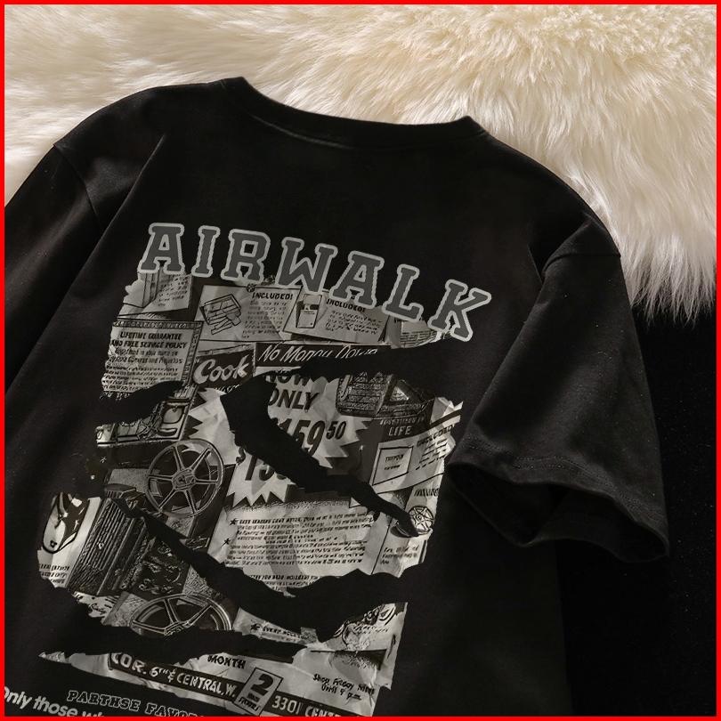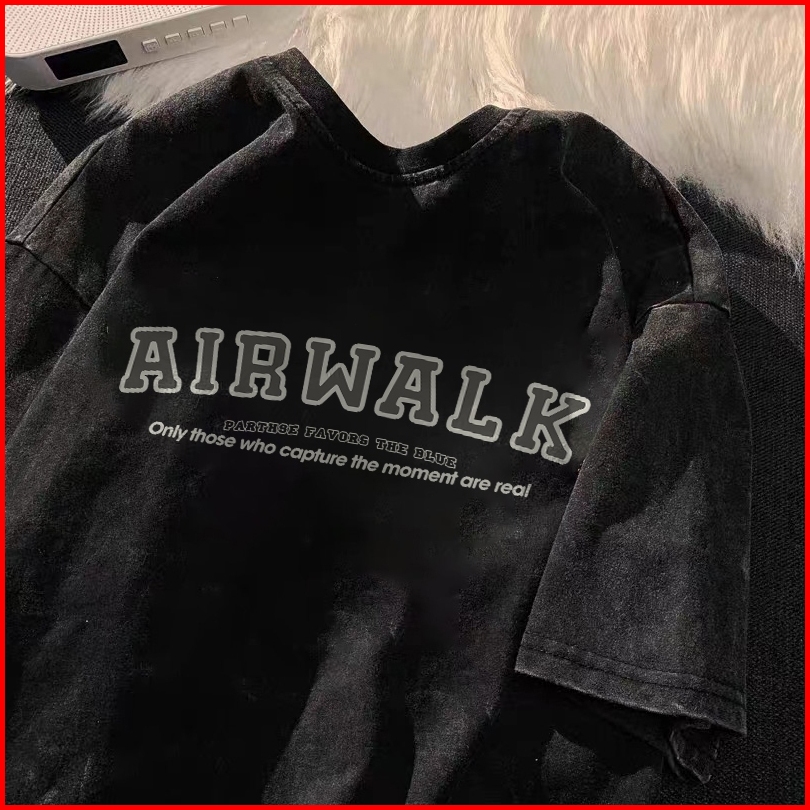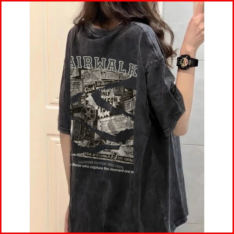 Yesgirl Washed Kaos Oversize Lengan Pendek T-shirt Air Walk Katun Murni Retro Style Wanita Top 2.21