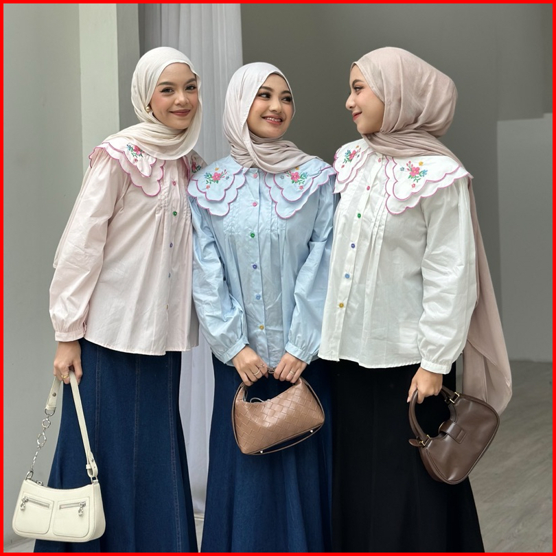 Kimoora - Blouse By Yellowfacy Kode 661 Atasan Wanita Bordir Embroiderry Katun Poplin