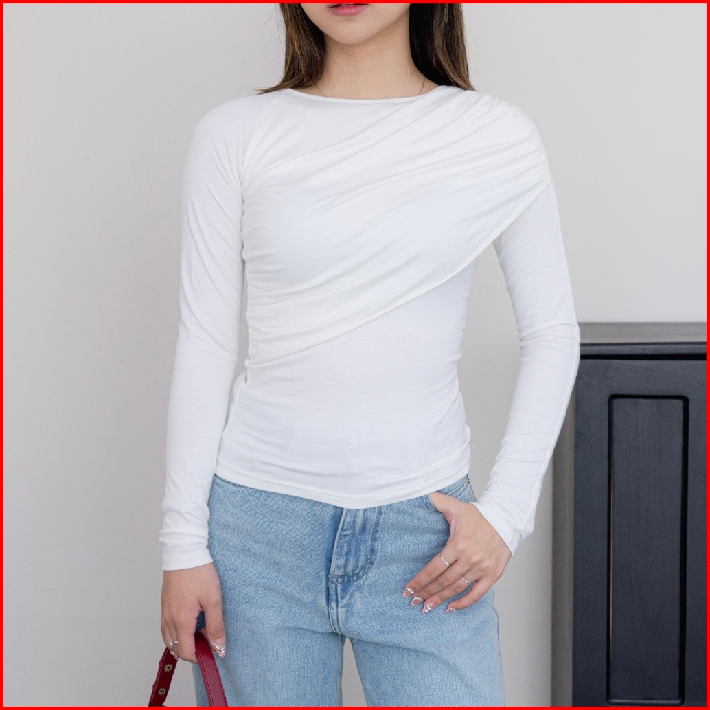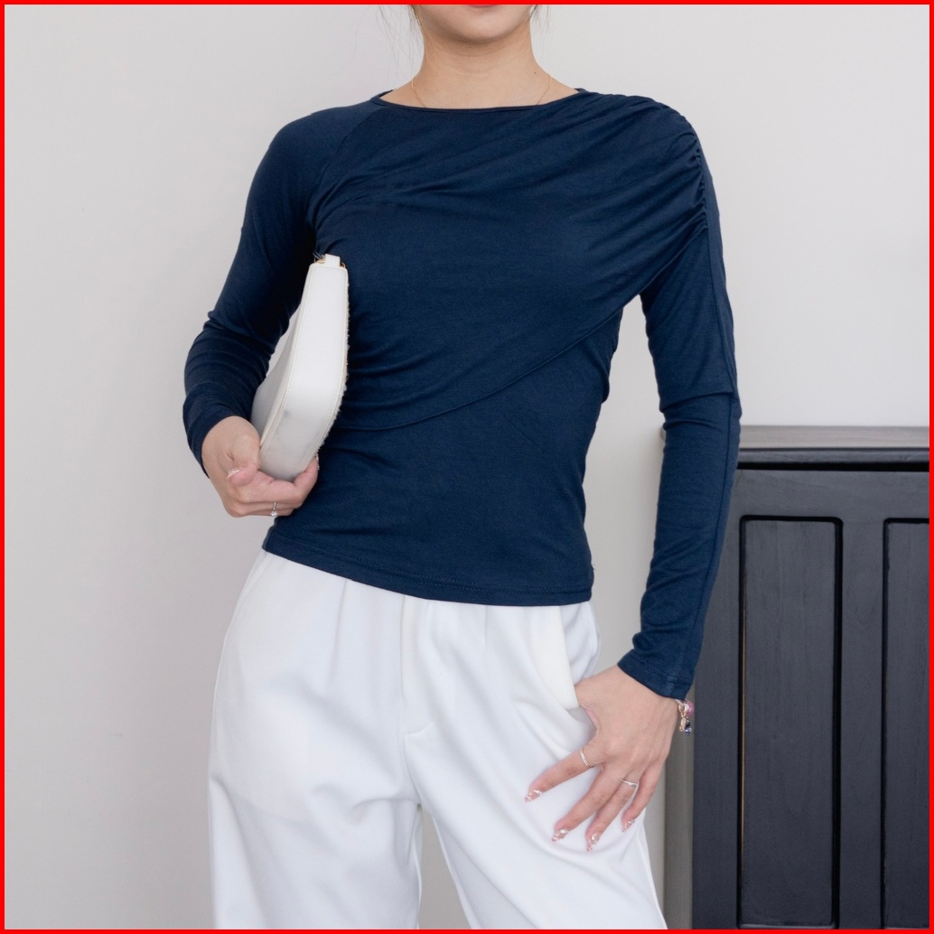 Asoka Claudi Top 860 - Atasan Wanita Lengan Panjang - Korean Fitted Top Oneck Ruched
