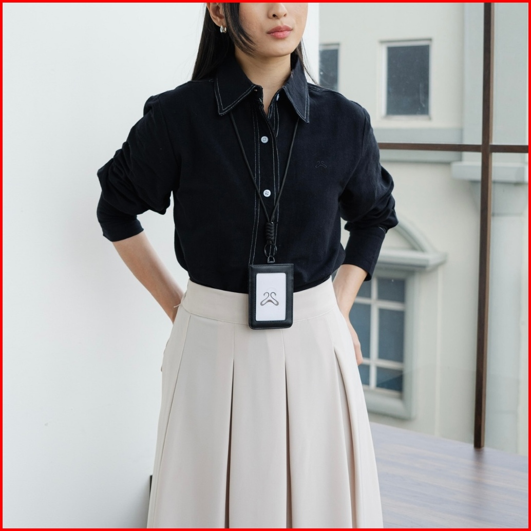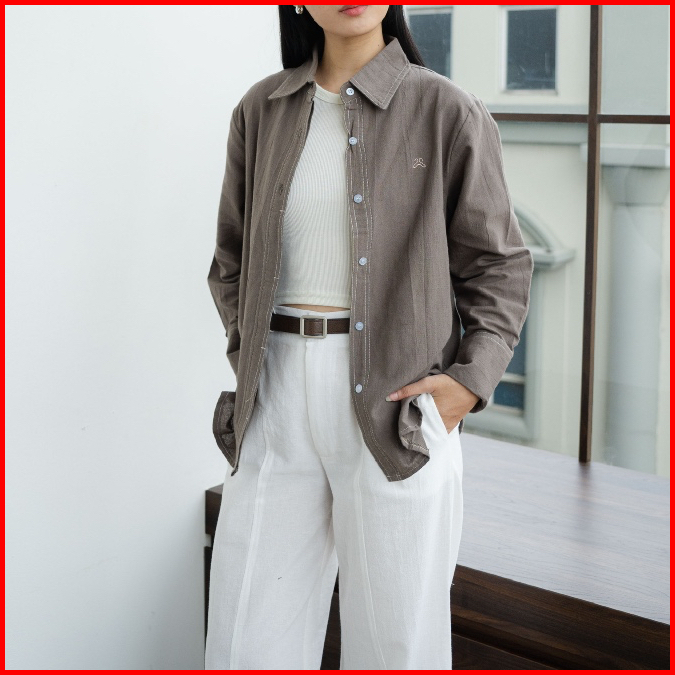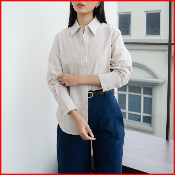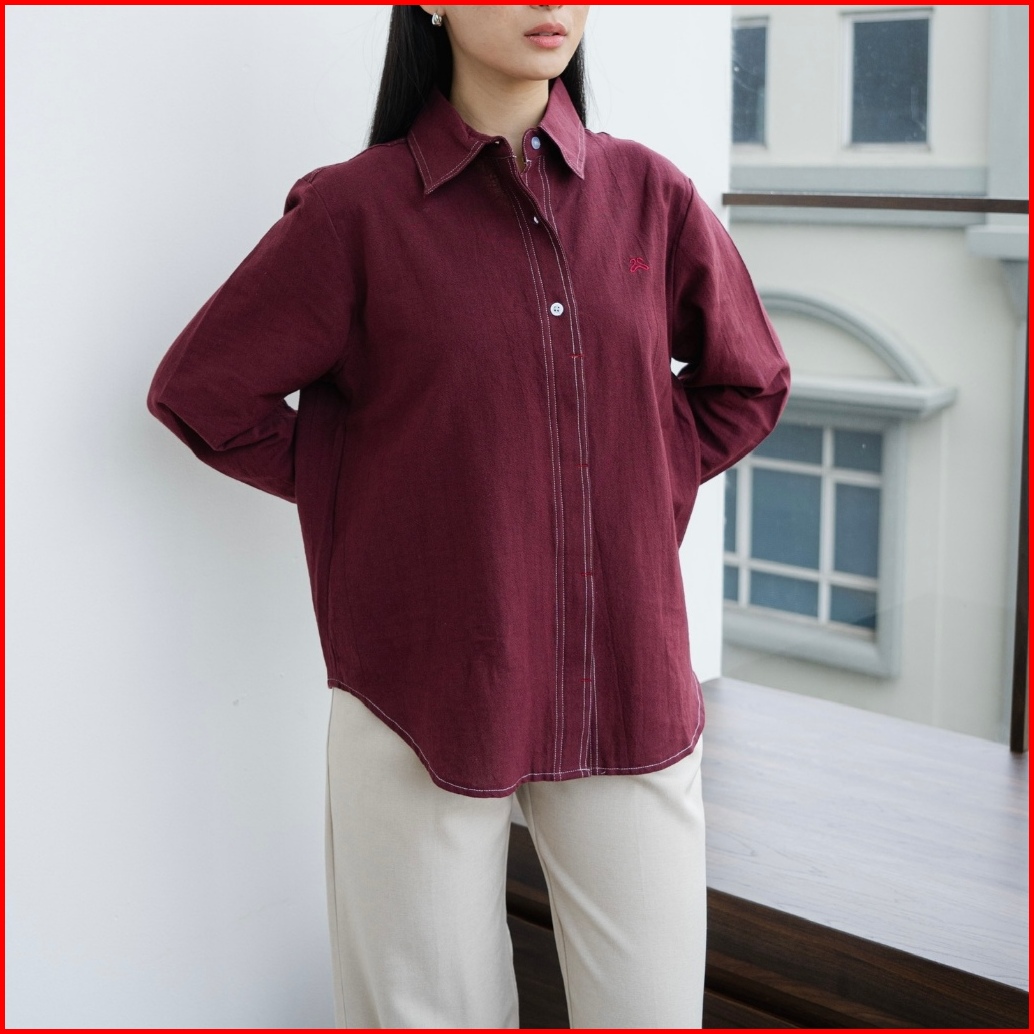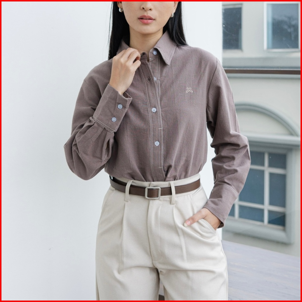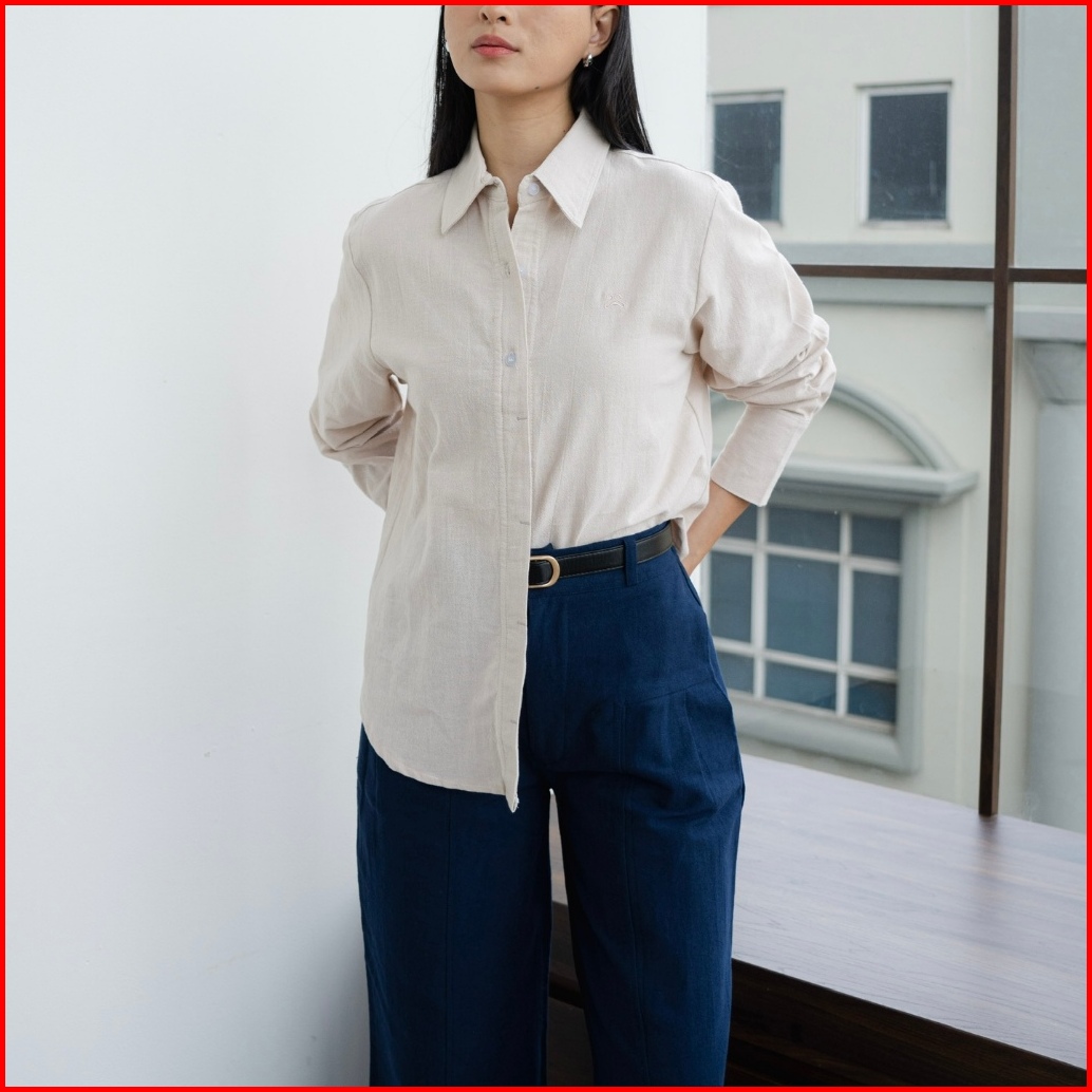 Asoka Zaira Shirt 3350 - Kemeja Kerja Wanita Basic Long Sleeve - Contrast Stitch Shirt Linen