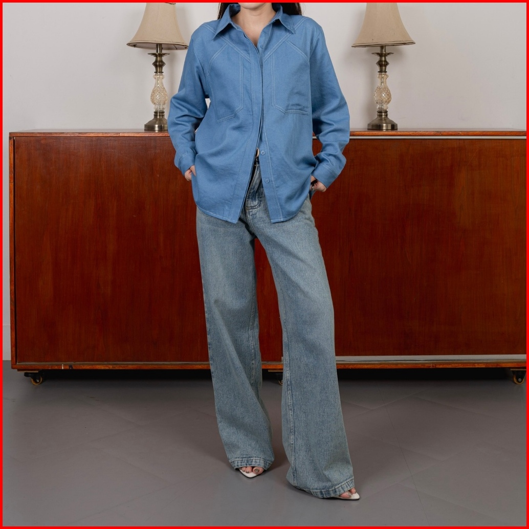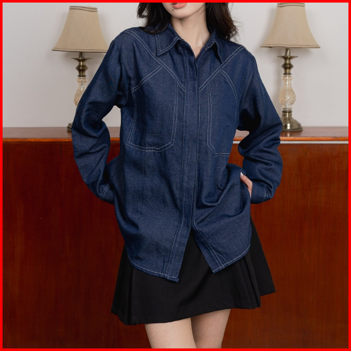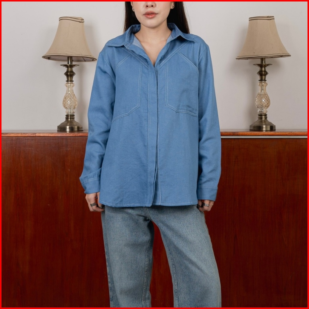 Asoka Clove Shirt 2520 - Kemeja Kasual Basic Wanita Oversize - Contrast Stitch Blouse Cotton Denim