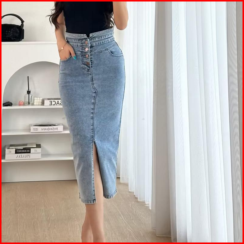 Rok Jeans Higwaist Belah Tengah Korean Style Rok V-line