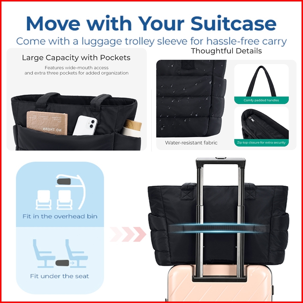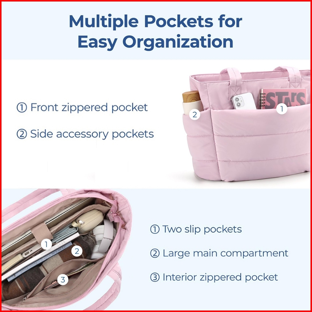Bagsmart Tas Wanita Tote Bag Lightweight Puffy Tas Kuliah Tote Bag For Travel Work Beach