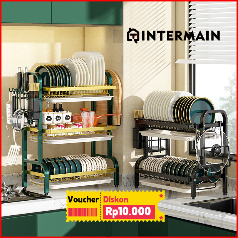 Rak Piring Dapur Hijau Minimalis Hemat Ruang Tahan Karat Estetika Modern Menawan In04