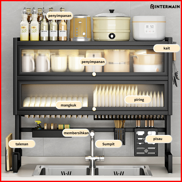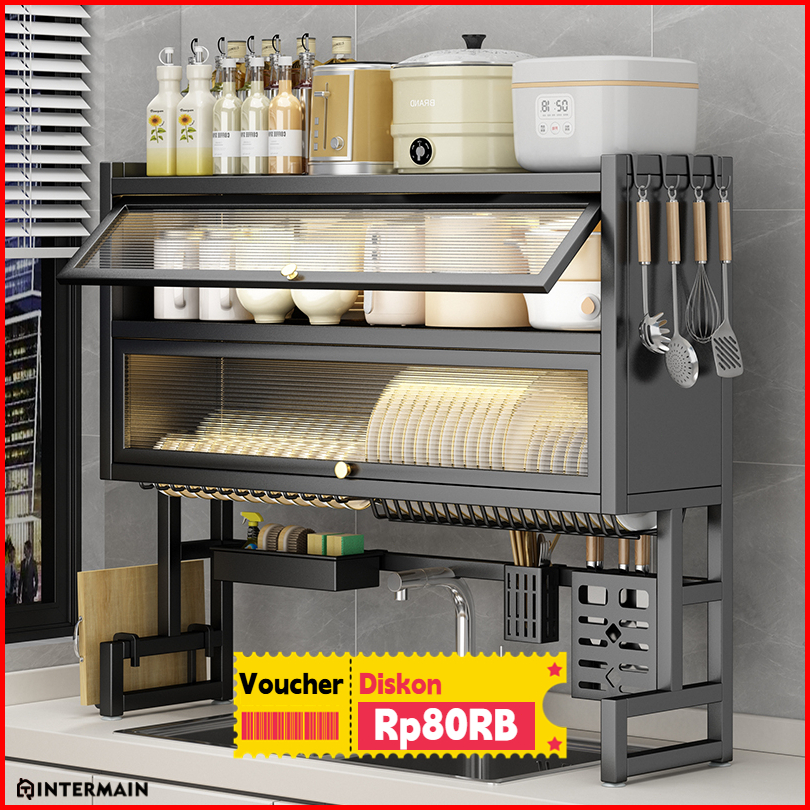Rak Piring Tertutup 2 Tingkat Anti Debu Stainless Hemat Ruang Double Layer Hemat Tempat In17