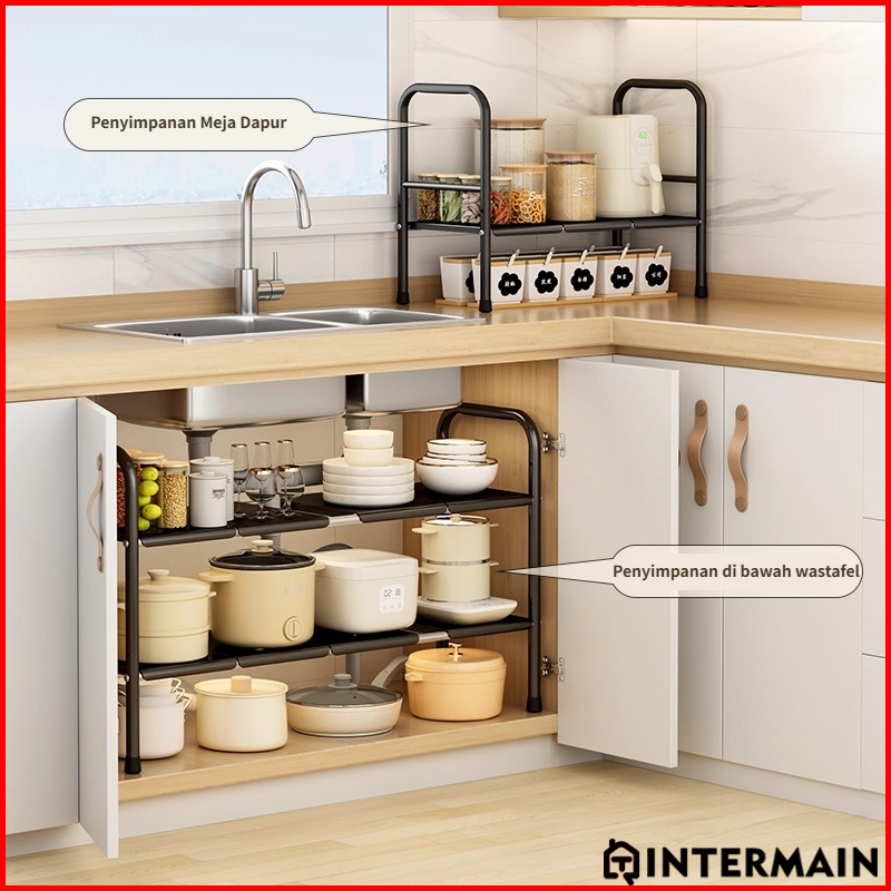 Rak Penyimpanan Dapur Serbaguna Extendable Stainless Steel Under Sink Rack Rak Bawah Wastafel Rak Kolong Dapur Anti Kara