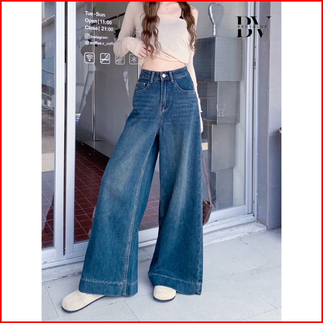 Beevalue Celana Panjang Jeans Wanita Baggy Jeans Wide Leg Jeans Kulot Jeans Loose Jeans Highwaist Bahan Denim Premium Ko