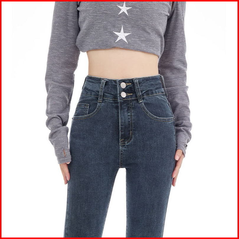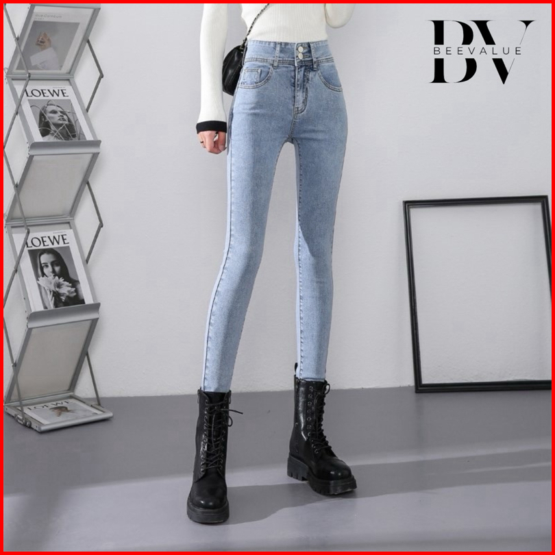 Beevalue Hw Skinny Jeans Wanita Dua Kancing Bahan Stretch Celana Jeans Highwaist Skinny Celana Jeans Wanita Skinny Bahan