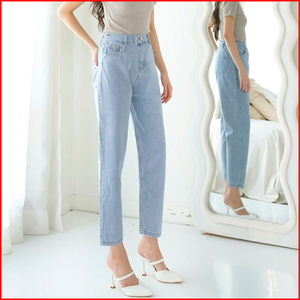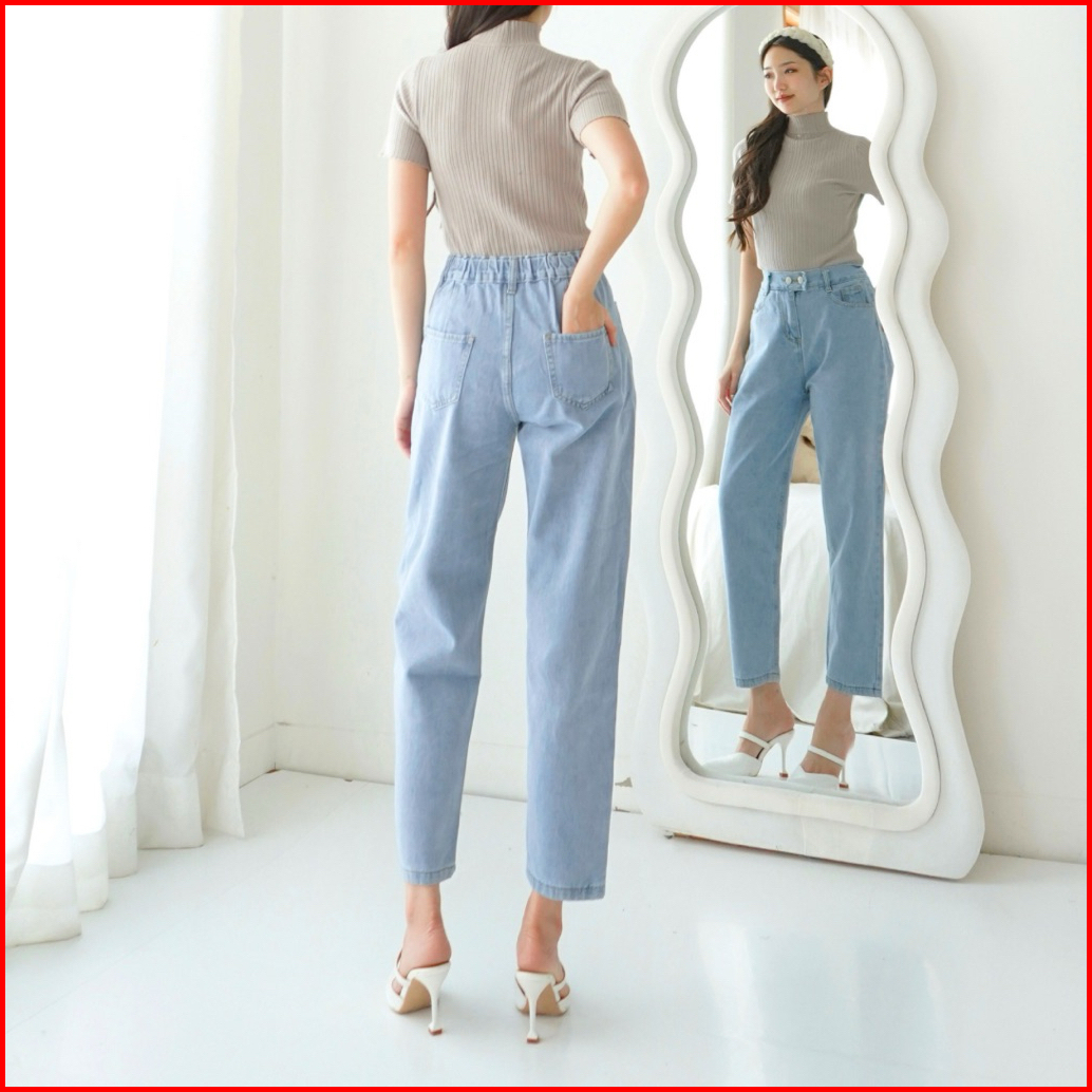 Beevalue Celana Jeans Panjang Wanita Highwaist Pinggang Karet Premium Celana Jeans Boyfriend Hw Pinggang Karet Jeans Wan