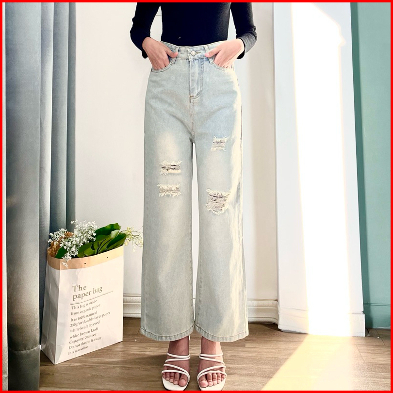 Beevalue Celana Loose Jeans Highwaist Ripped Sobek Tembus Warna Vintage Celana Jeans Kulot Wanita Highwaist Bahan Premiu
