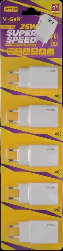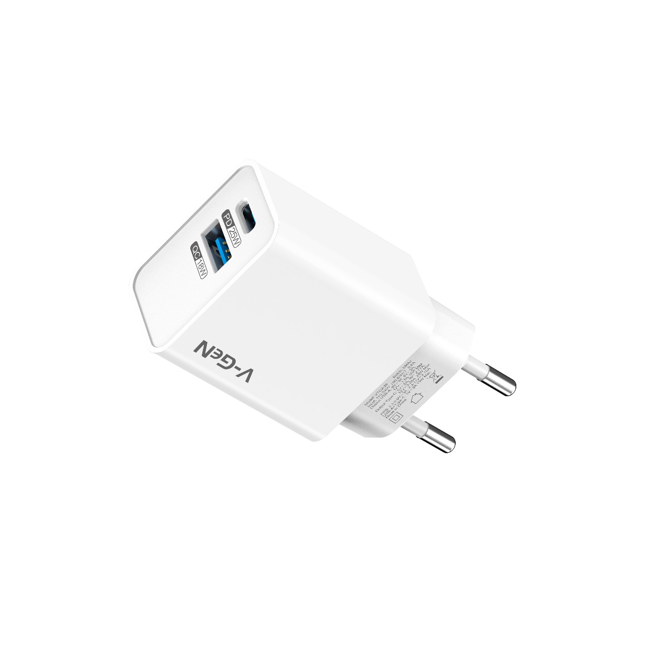 Travel Adaptor VTC2-39 Charger 2 port (USB-A + Type-C) Fast Charging QC3.0 25W V-GeN (Satuan)