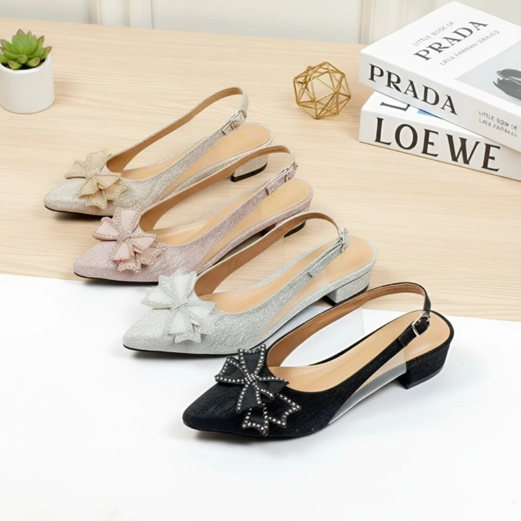 [ ✅️ ] Nahshoes.id Heels Wanita 3Cm Sepatu Pesta Wanita Motif Glitter Pita Kupu-Kupu KR_04