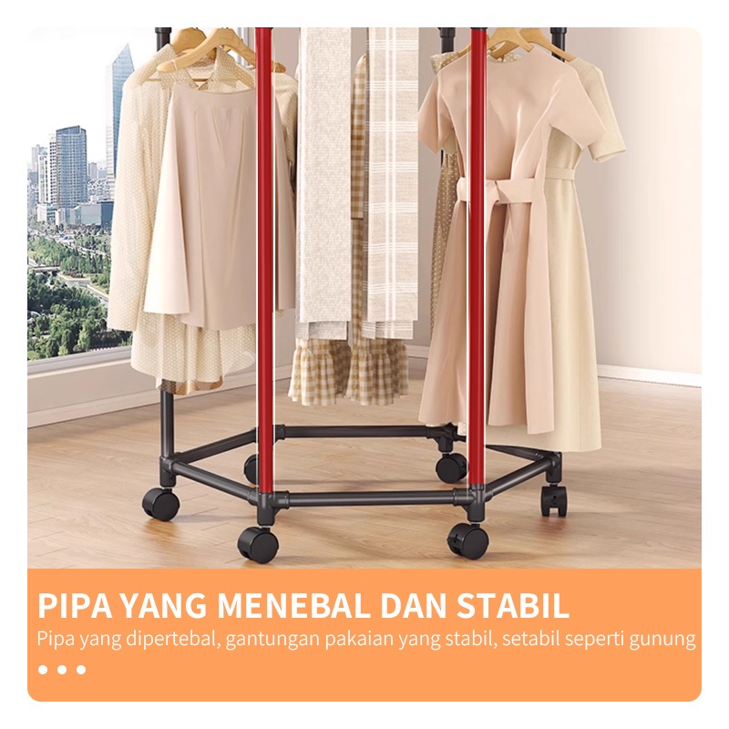 Jemuran Pakaian Stand Hanger Rotasi 360° Dengan 6 Roda Jemuran Bulat Jumbo Rak Gantung Baju Besi Putar Serbaguna Gantun