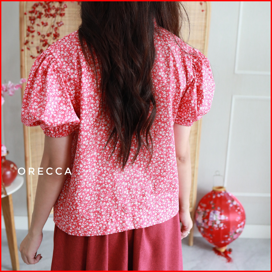 Orecca - Xing Top Atasan Bunga Pita Tangan Pendek Wanita