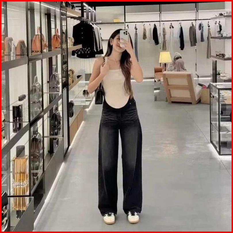 Celana Jeans Baggy Wisker Gombrong - Celana Jeans Wide Leg Korean Style - Celana Jeans Gombrong Skena Style - Cel