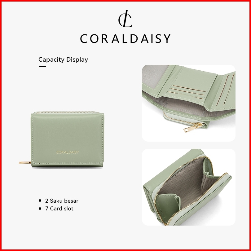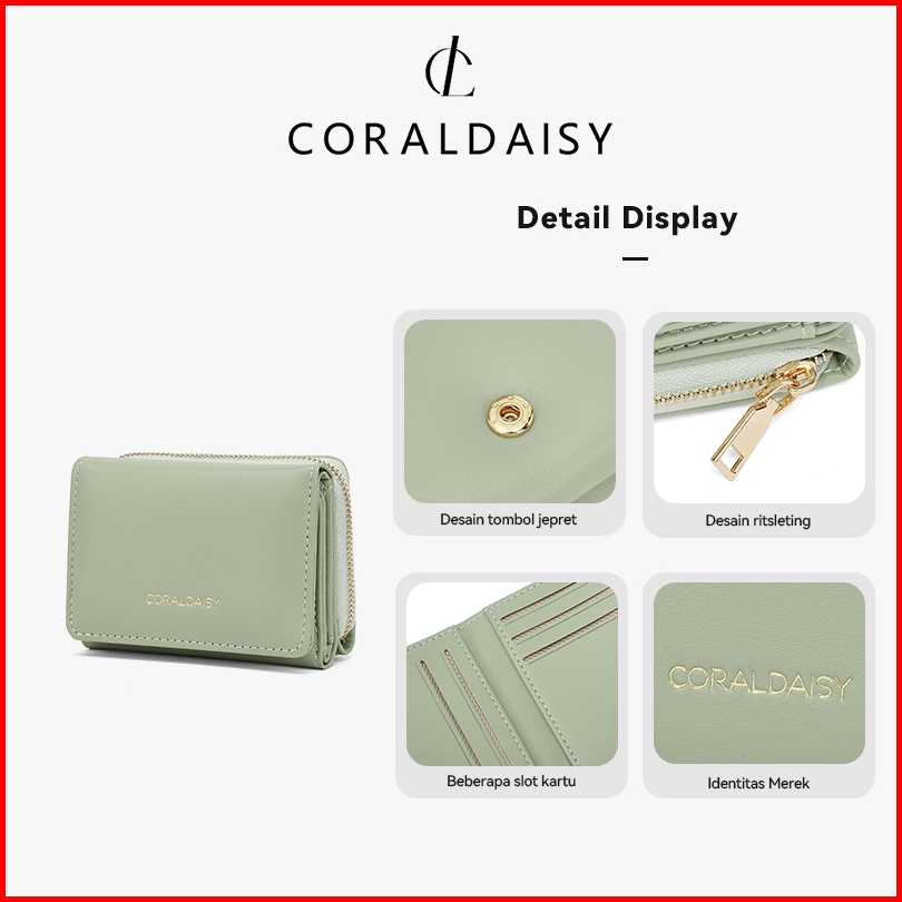 Coraldaisy Tas Wanita 2025 Elegan Lipat Dua Dompet Beberapa Kompartemen Card Holder Panjang Tas Mini