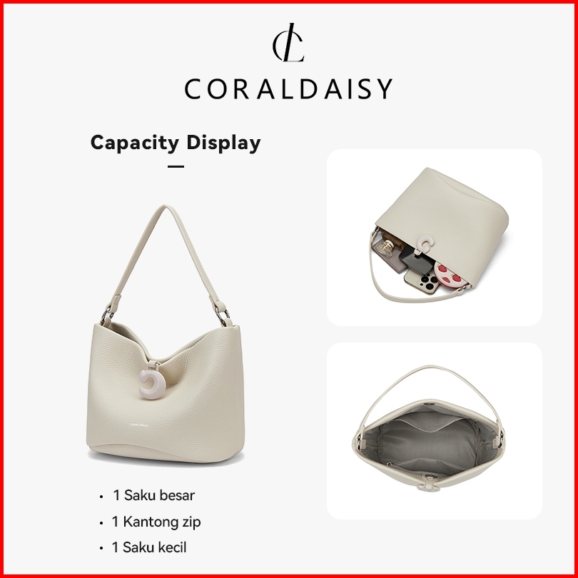 Coraldaisy Tas Wanita 2025 Handbag Warna Solid Tas Selempang Tas Jinjing Elegan Slingbag Bucket Bag