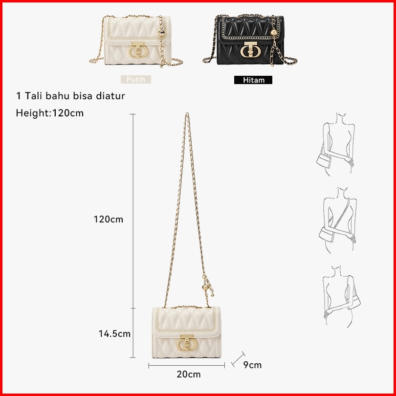 Coraldaisy Tas Wanita 2025 Tas Selempang Tas Rantai Sling Bag Tali Panjang Shoulder Bag Tas Pundak