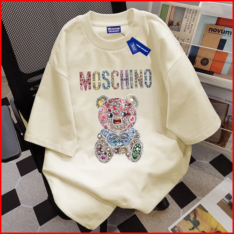 Yesgirl Korean Bear Moschino Print Kaos Kasual Longgar Kaos Oversize Wanita Fashion Korean Style Baju Kaos Oversize Baju