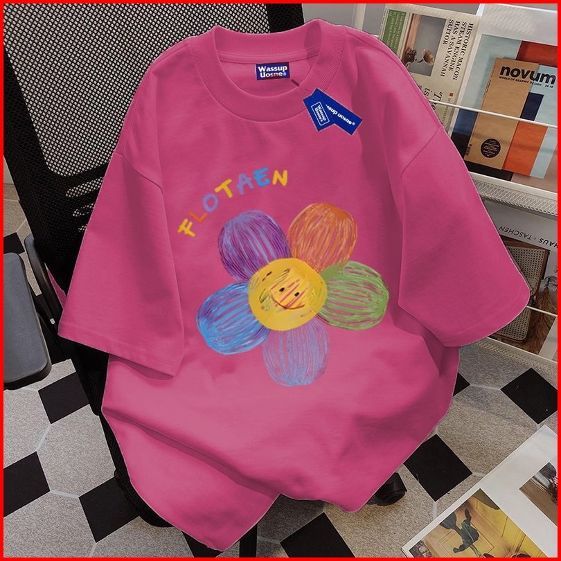 Yesgirl Korean Style Fashion Simple Flower Print Kaos Kasual Longgar Kaos Oversize Wanita Fashion Korean Style Baju Kaos